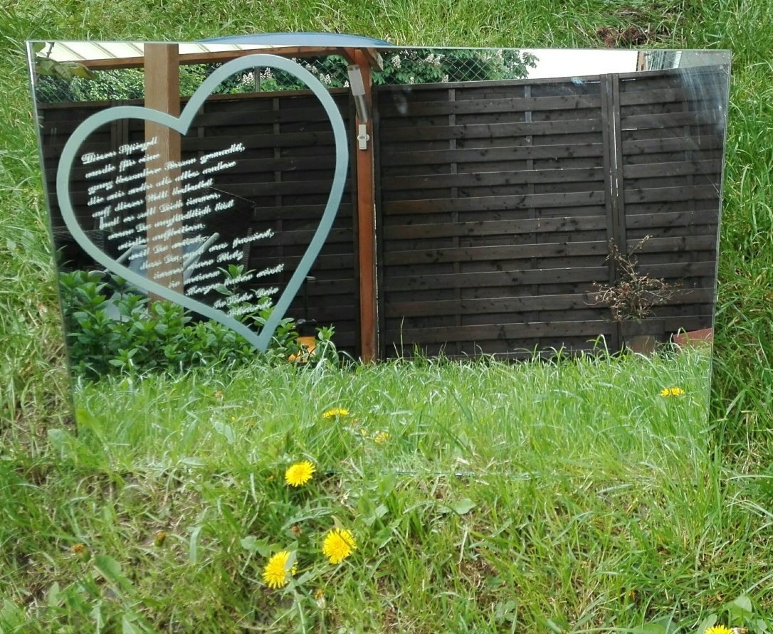 Spiegel mit Sandstrahlarbeit